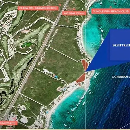 Os hóspedes do apartamento Santamar Penthouse G 306 à beira-mar podem visitar um dos pontos de referência altamente cotados, o Praia Akumal, situado a 2.5 km de distância. Outros pontos turísticos são Aktun Chen Natural Park 3.6 km), bem como Parque Ecológico de Akumal 2 km). - ❓
